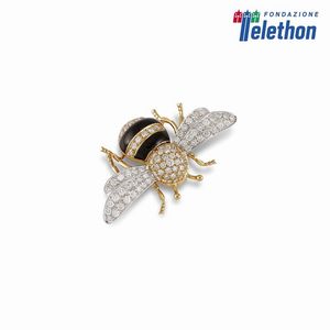 PICCOLA SPILLA A FORMA DI APE CON DIAMANTI in oro giallo e bianco 18kt, impreziosita da diamanti taglio brillante [..]