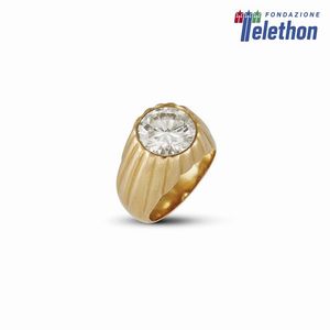 ANELLO CON DIAMANTE in oro giallo 18kt, diamante taglio brillante (smontato) di ct 5.60, colore N/O, purezza P2, [..]