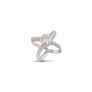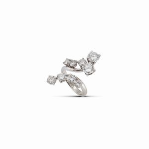 ANELLO CONTRARIE CON DIAMANTI in oro bianco 18kt, impreziosito da diamanti taglio brillante per ct 4.30 circa, [..]