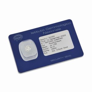 DIAMANTE IN BLISTER taglio brillante, di ct 1.55, colore N/O, purezza Vvs2. Corredato di certificato IGN del 12/09/2022 [..]