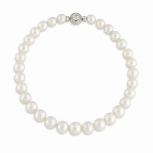 COLLANA DI PERLE CON DIAMANTI composta da un filo di perle di mm 14 circa, fermatura in oro bianco 18kt impreziosita [..]