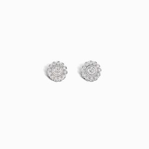 PAIO DI ORECCHINI A FORMA DI FIORE CON DIAMANTI in oro bianco 18kt, composti da due diamanti centrali taglio rotondo [..]