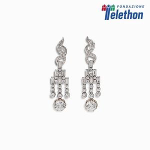 PAIO DI ORECCHINI PENDENTI CON DIAMANTI in oro bianco 18kt, impreziositi da due diamanti taglio vecchio per ct [..]
