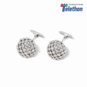 PAIO DI GEMELLI CON DIAMANTI in oro bianco 18kt, dalla forma semisferica, impreziositi da diamanti taglio brillante [..]