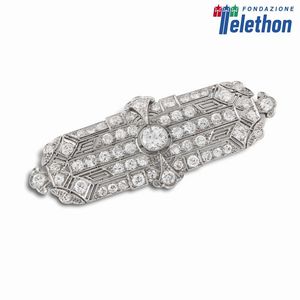 SPILLA CON DIAMANTI in oro bianco 18kt, impreziosita da diamanti taglio vecchio per ct 3.50 circa, con al centro [..]