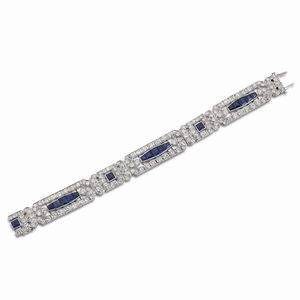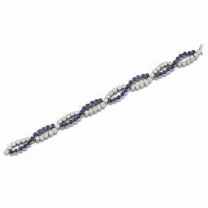 BRACCIALE CON ZAFFIRI E DIAMANTI in oro bianco 18kt, realizzato seguendo un motivo a intreccio, impreziosito da [..]