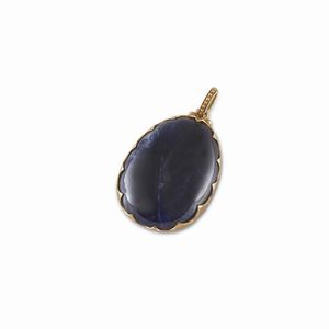 MARIO BUCCELLATI PENDENTE in oro giallo 18kt, recante una pietra dura taglio cabochon di mm 38x28x5 circa, parte [..]