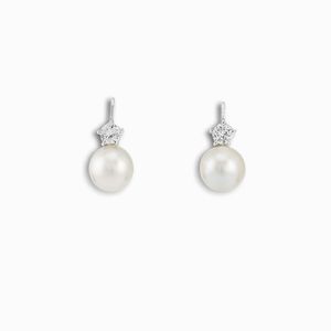 PAIO DI ORECCHINI CON PERLE E DIAMANTI in oro bianco 18kt, impreziositi da perle di mm 10 circa sormontate da [..]