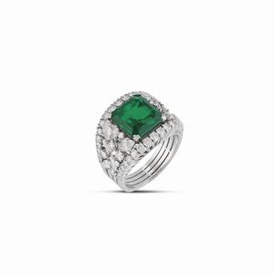 ANELLO CON SMERALDO COLOMBIANO E DIAMANTI in oro bianco 18kt, impreziosito da uno smeraldo colombiano taglio ottagonale [..]
