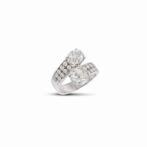 ANELLO CONTRARIE CON DIAMANTI in oro bianco 18kt, impreziosito agli apici da due diamanti taglio antico per ct [..]