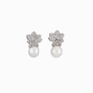 PAIO DI ORECCHINI CON PERLE "SOUTH SEA" E DIAMANTI in oro bianco 18kt, composti da foglie impreziosite [..]