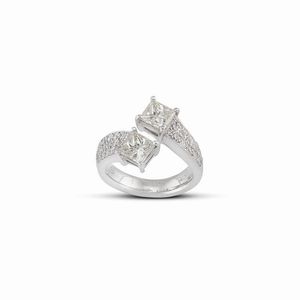 ANELLO CONTRARIE CON DIAMANTI in oro bianco 18kt, con agli apici due diamanti taglio princess per ct 2.40 circa, [..]