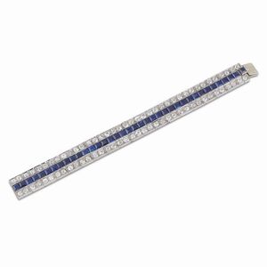 BRACCIALE A FASCIA CON ZAFFIRI SINTETICI E DIAMANTI in platino, impreziosito da una fila centrale di zaffiri sintetici [..]