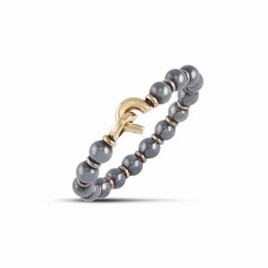 CARTIER BRACCIALE SEMIRIGIDO composto da una serie di sfere in metallo, fermatura a gancio in oro giallo 18kt, [..]
