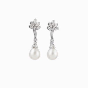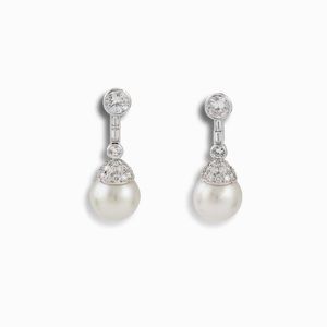 PAIO DI ORECCHINI CON PERLE E DIAMANTI in oro bianco 18kt, impreziositi da perle di mm 10 circa sormontate da [..]