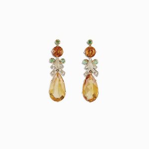 PAIO DI ORECCHINI PENDENTI CON PIETRE DI COLORE E DIAMANTI in oro giallo, rosa e bianco 18kt, impreziositi da [..]
