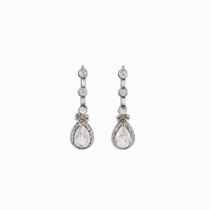 PAIO DI ORECCHINI PENDENTI CON DIAMANTI in oro bianco 18kt, impreziositi da due diamanti taglio vecchio per ct [..]