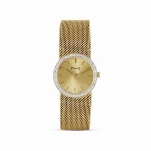 PIAGET OROLOGIO DA DONNA cassa in oro giallo e bianco 18kt, quadrante oro con indici applicati, firmato "Piaget", [..]