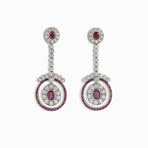 PAIO DI ORECCHINI PENDENTI CON RUBINI E DIAMANTI in oro bianco 18kt, impreziositi da rubini taglio ovale e carré [..]