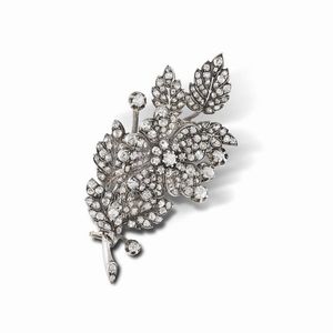 SPILLA TREMBLANT A TRALCIO FIORITO CON DIAMANTI in argento e oro, impreziosita da diamanti taglio vecchio per [..]