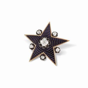 SPILLA A FORMA DI STELLA CON DIAMANTI in oro e argento, decorata in smalto e impreziosita da diamanti taglio antico [..]