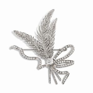 SPILLA CON DIAMANTI in oro bianco 18kt, impreziosita da diamanti taglio vecchio per ct 3.50 circa, con al centro [..]