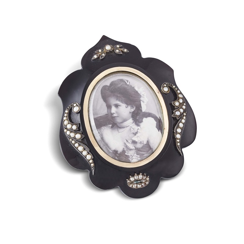 BIG PHOTO FRAME BROOCH IN 9KT GOLD SILVER AND ONYX