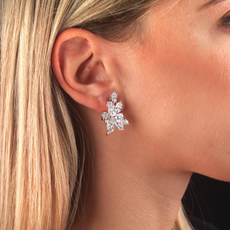 DIAMOND CLUSTER EARRINGS IN PLATINUM