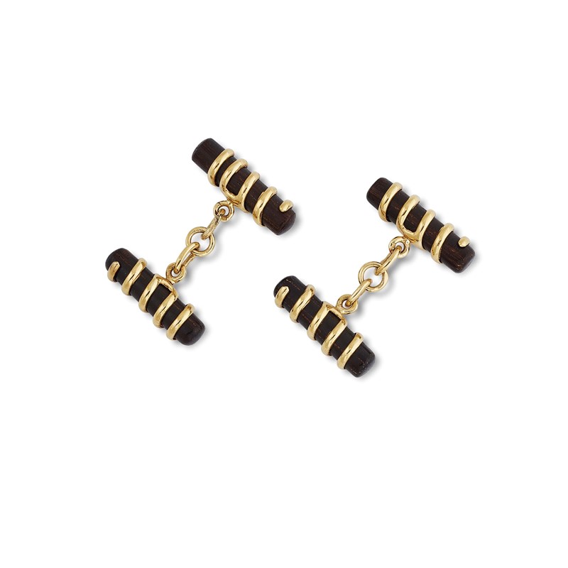 REZA SPIRAL-SHAPED CUFFLINKS IN WOOD AND 18KT YELLOW GOLD