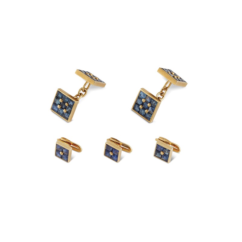 SAPPHIRE SQUARE SHAPED TUXEDO SET IN 18KT YELLOW GOLD