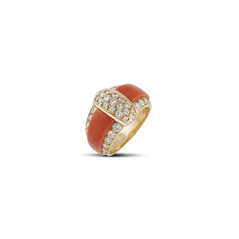 VAN CLEEF & ARPELS ANELLO A FASCIA CON CORALLO E DIAMANTI