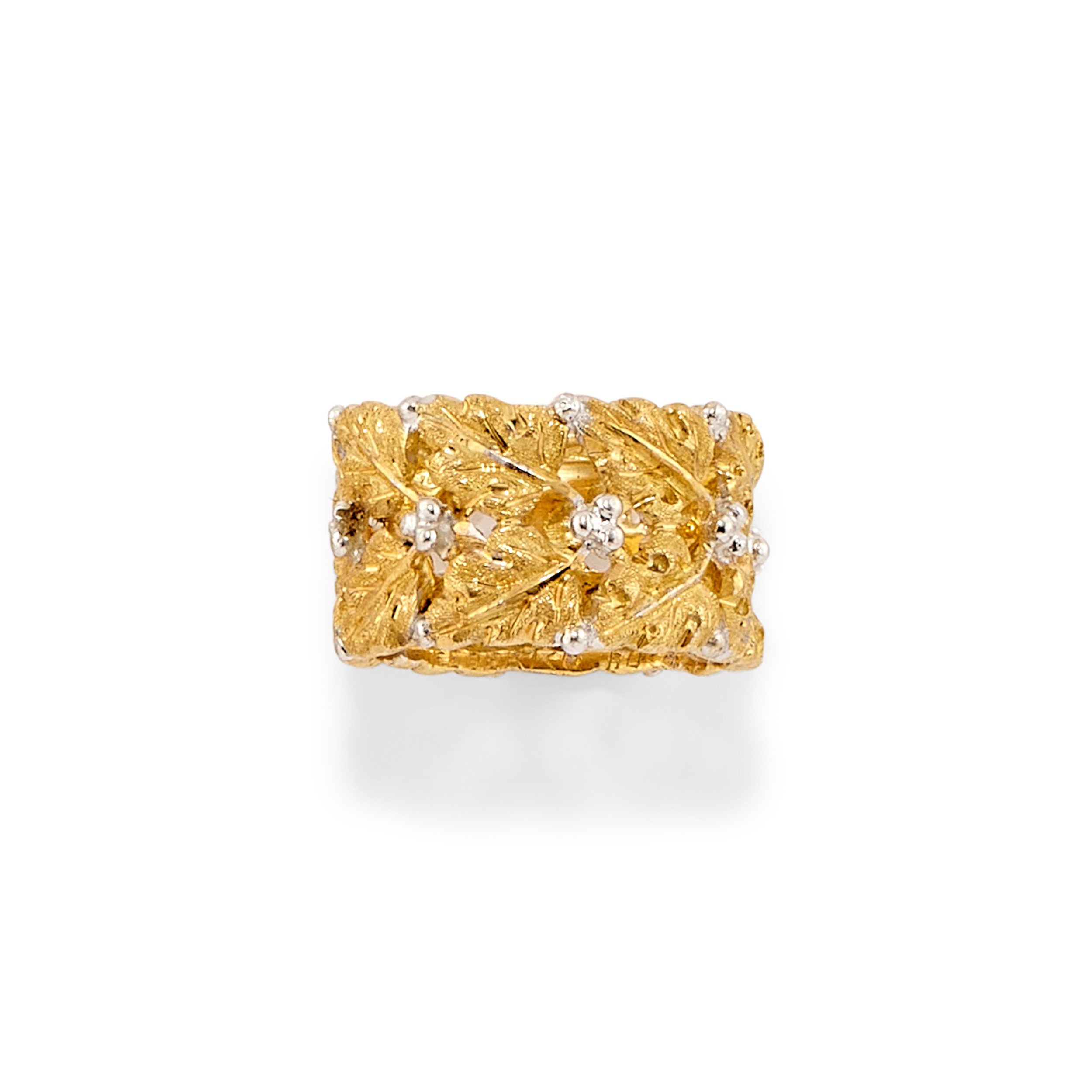 a fascia traforata con motivi a foglie, reca firma Federico Buccellati.
