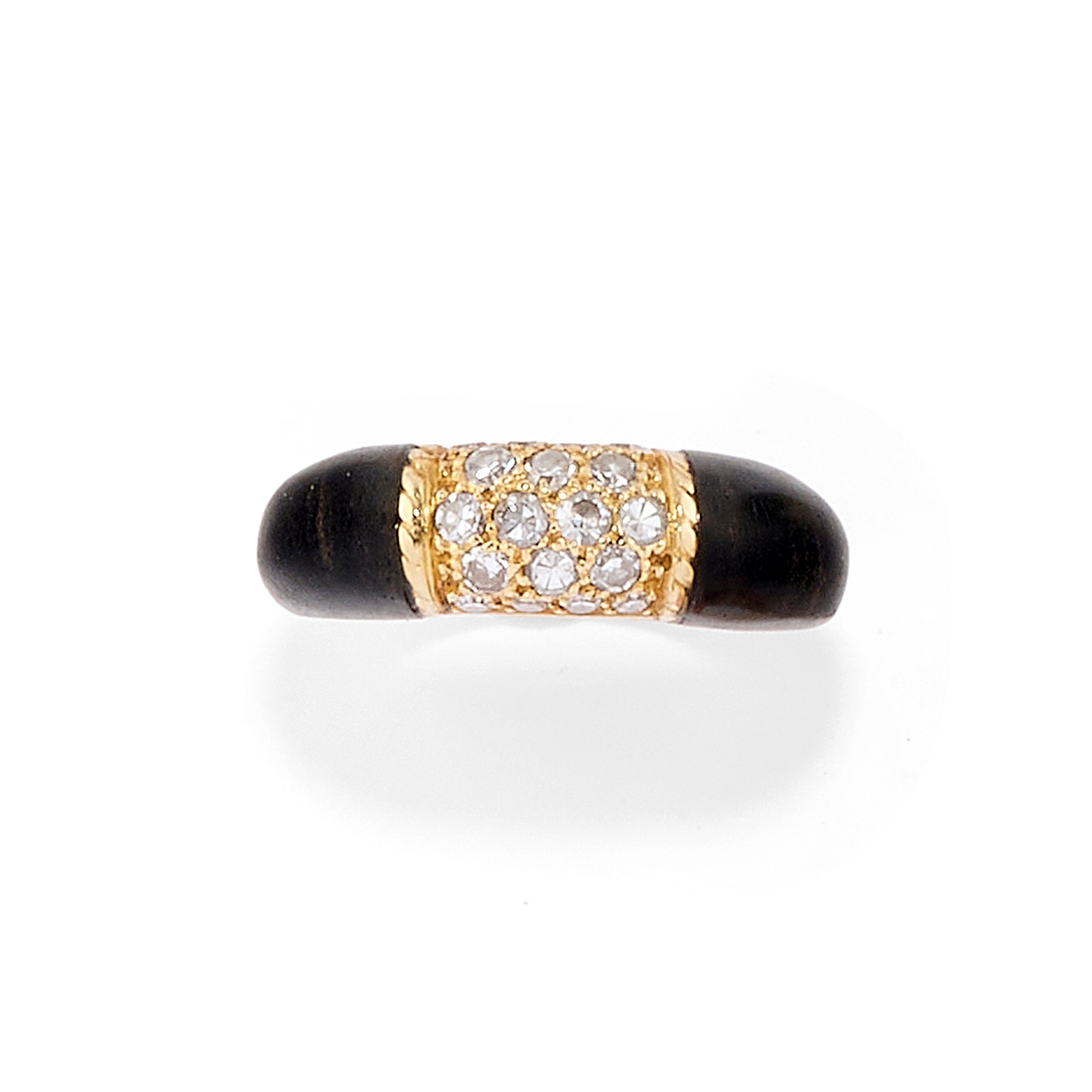 a fascia con laterali sagomati in legno e centrale in diamanti taglio huit-huit.