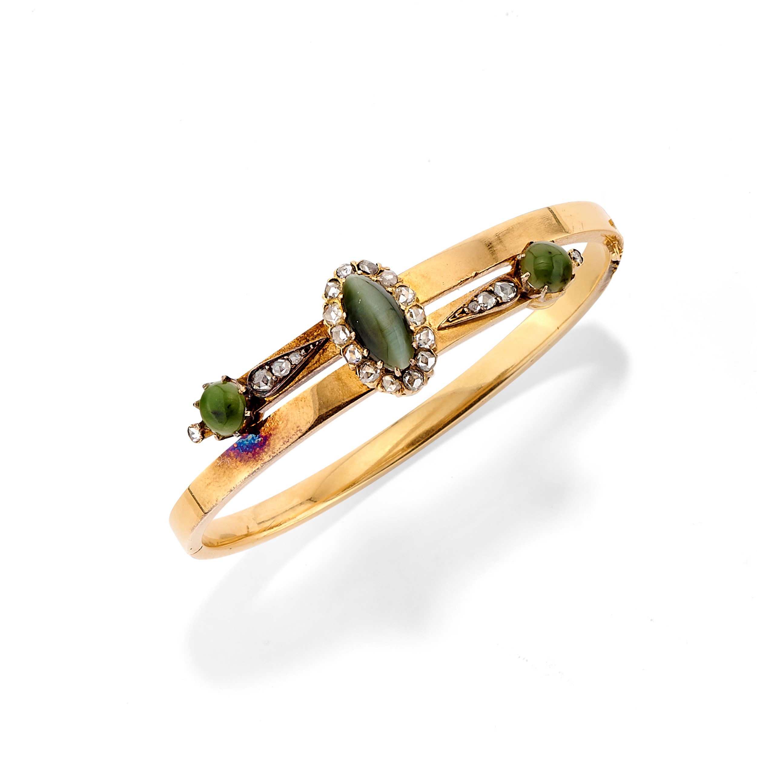 Bracciale in oro giallo 18k, giada nefrite e diamanti, inizio XX secolo