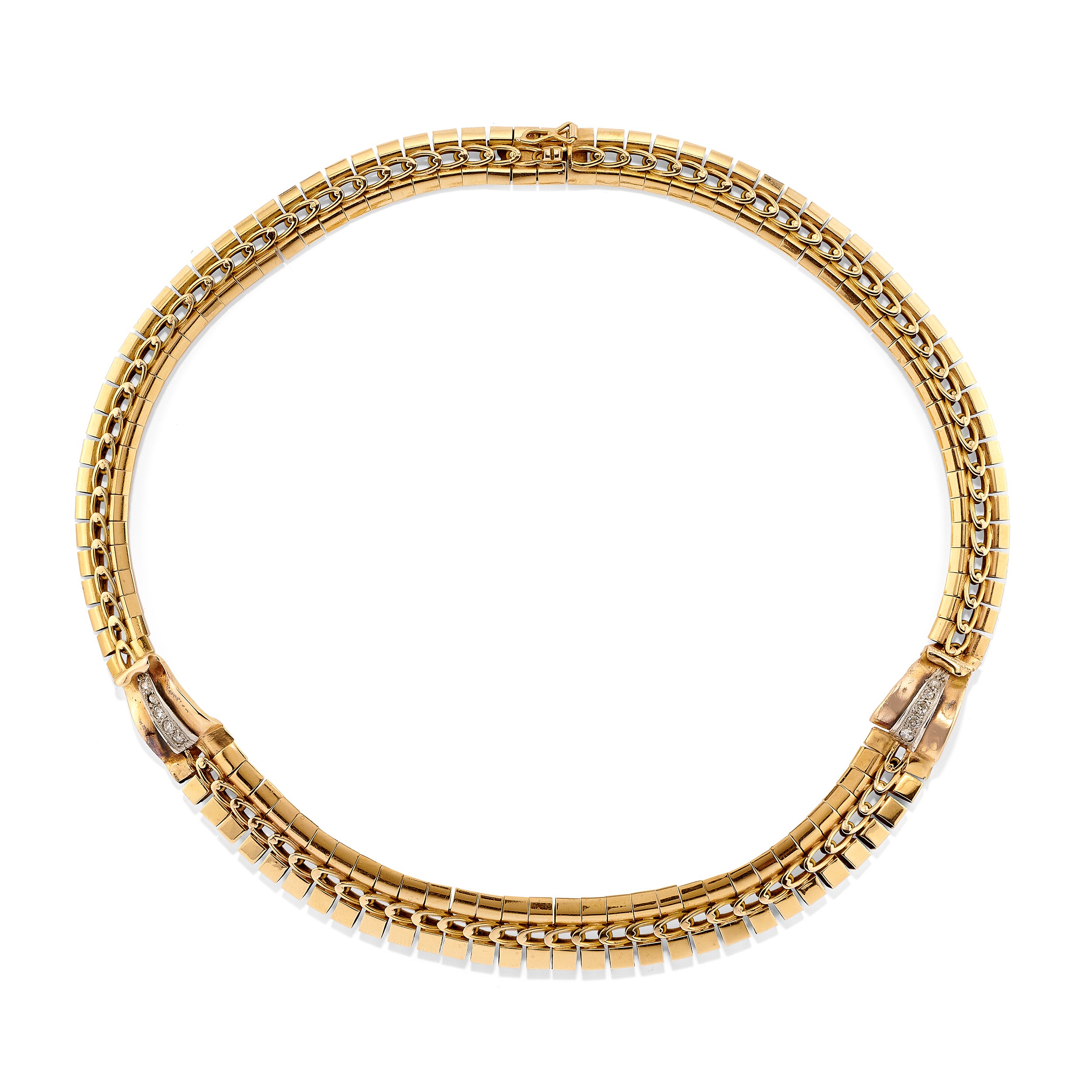 Collana in oro bicolore 18k e diamanti, 1950 circa