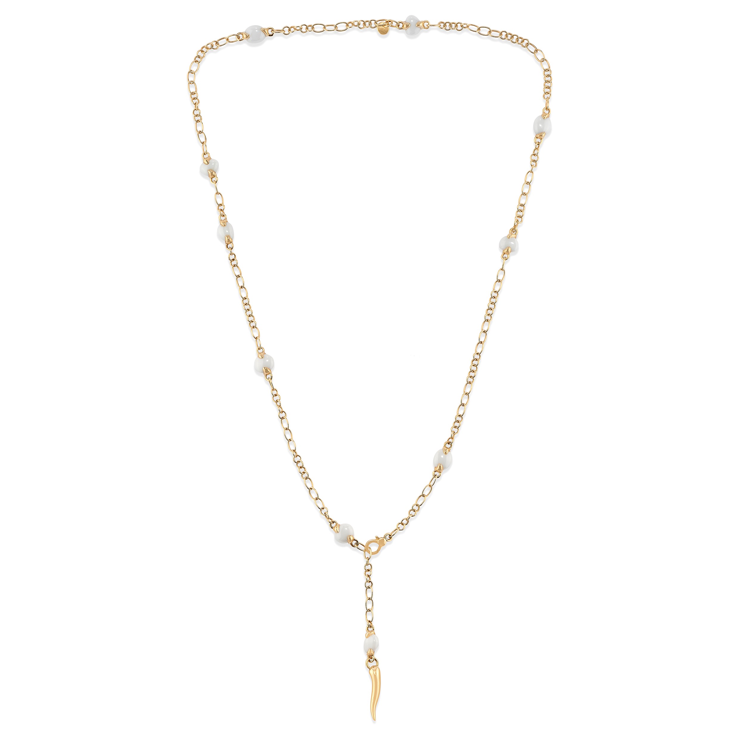 collezione Capri, a catena con pepite in ceramica bianca e pendente a forma di cornetto.