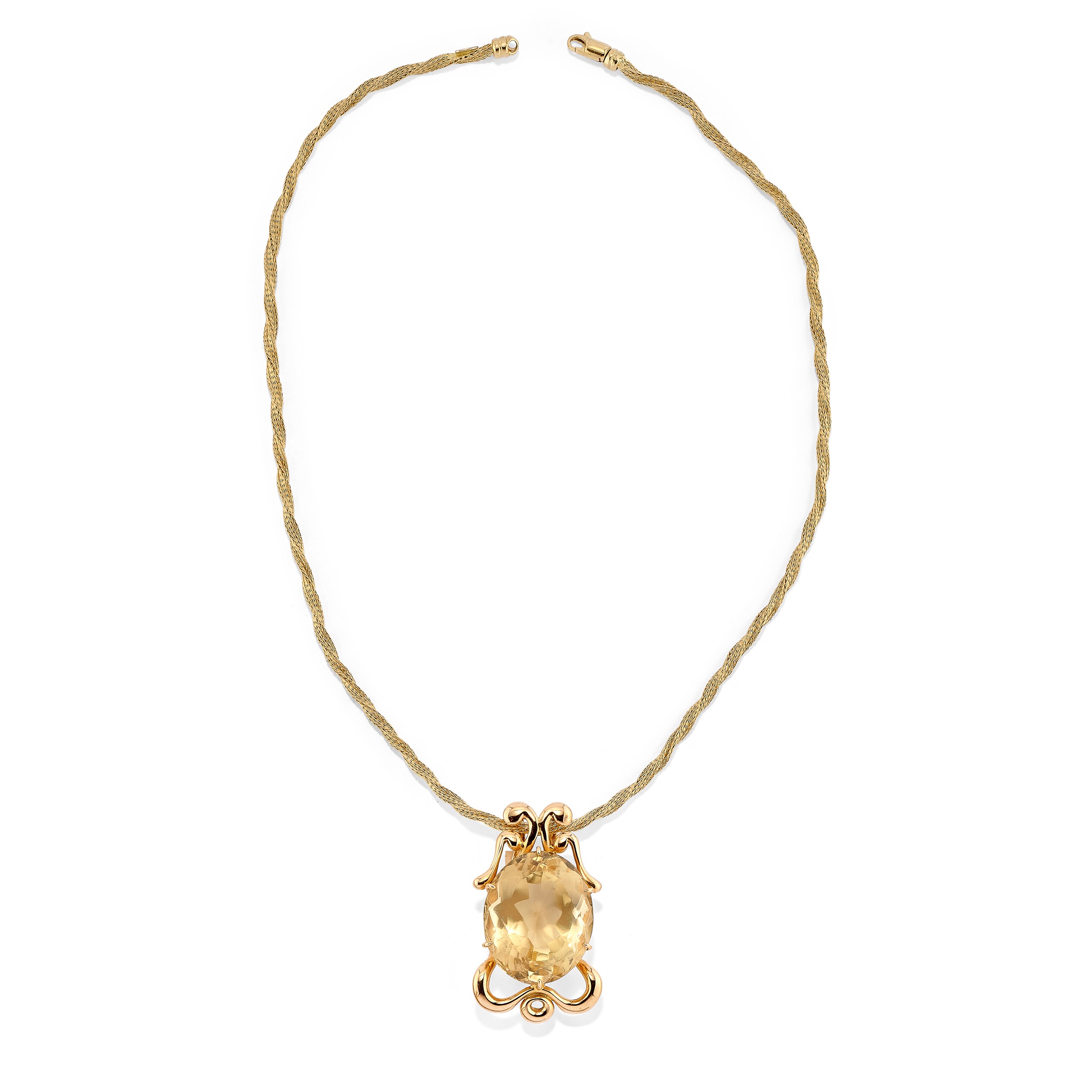 catena a maglia ritorta e pendente con grande quarzo citrino taglio ovale sfaccettato mm 20,70 x 20,30 x 16,00.