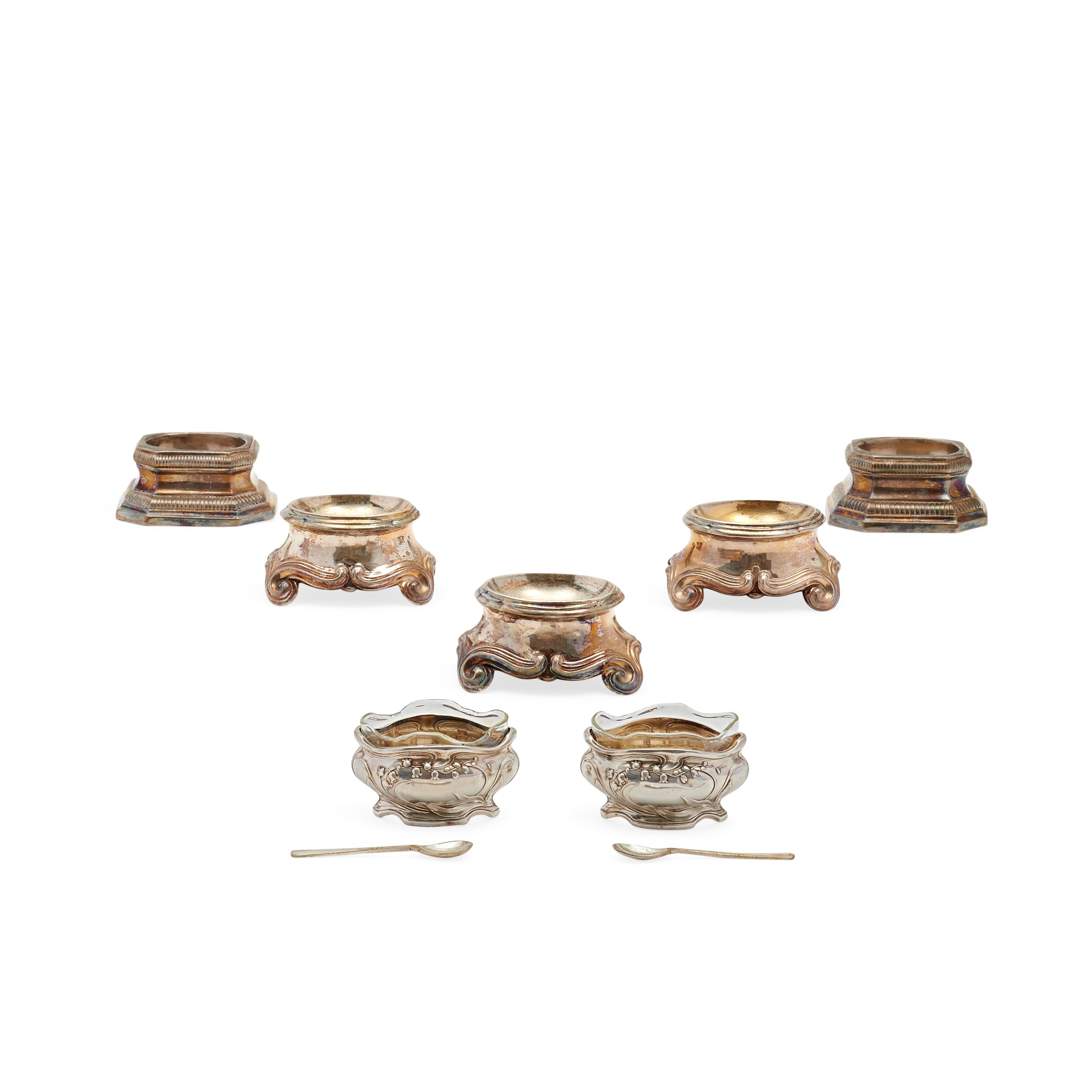 Due coppie e un trittico di saliere in argento e vetro, Francia, fine XVIII seco [..]