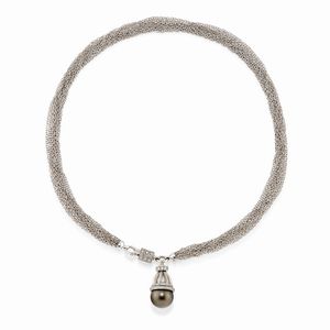 realizzata a dieci fili di catene con maglie ad anello, al centro motivo a gabbia con perle coltivate e diamanti [..]