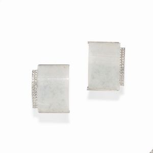 di forma geometrica con lastra curva di forma rettangolare in giada ice con diamanti taglio brillante, chiusura [..]
