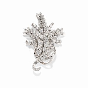 a tralcio di fiori con diamanti taglio rosa e briolette per totale ct 3,00 circa. Peso g 11,70 cm 5,50