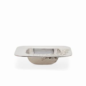 di forma quadrata con elegante decoro floreale cesellato e sbalzato. Peso g 460,00 cm 24,00x24,00