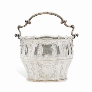 di forma ovale polilobata con ricco decoro inciso e presa a volute, punzoni del Fascio Littorio. Peso kg 2,320 [..]
