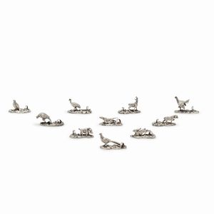composti da 5 forchette grandi, 6 cucchiai grandi, 36 cucchiaini di cinque servizi differenti. Peso kg 1,060 [..]