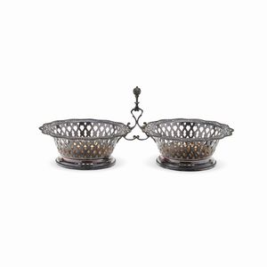 all'interno tre portacandela, bordo interamente traforato, parte superiore poggia vivande non in argento. Peso [..]