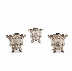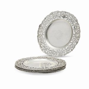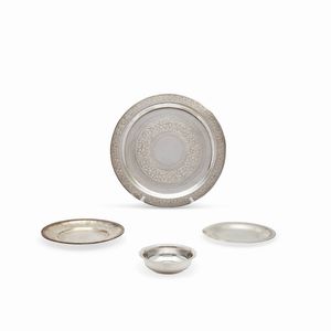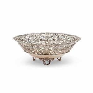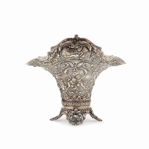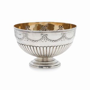 di forma circolare con decoro a festoni, parte interna in vermeil. Peso g 887,00 diametro cm 27,00 h cm 17,0 [..]