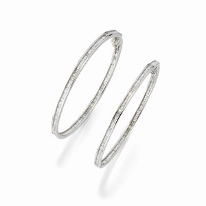a cerchio, decorati internamente ed esternamente con zirconi taglio baguette, chiusura a perno. Peso g 15,90 [..]