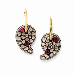 formati da cerchi in oro giallo che trattengono motivi pendenti a disegno cachemire decorati da diamanti taglio [..]