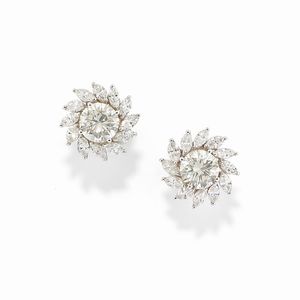 a fiore con al centro due diamanti taglio brillante per totale ct 4,40 circa, prob. colore N/O, purezza VS, contorno [..]