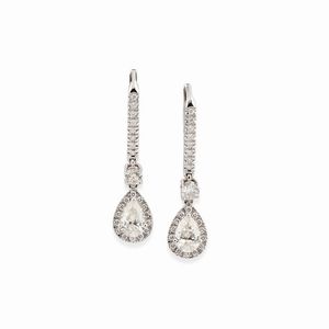a motivo pendente con diamanti taglio goccia di ct 1,00 e 1,01, colore H purezza SI2, e diamanti taglio brillante [..]